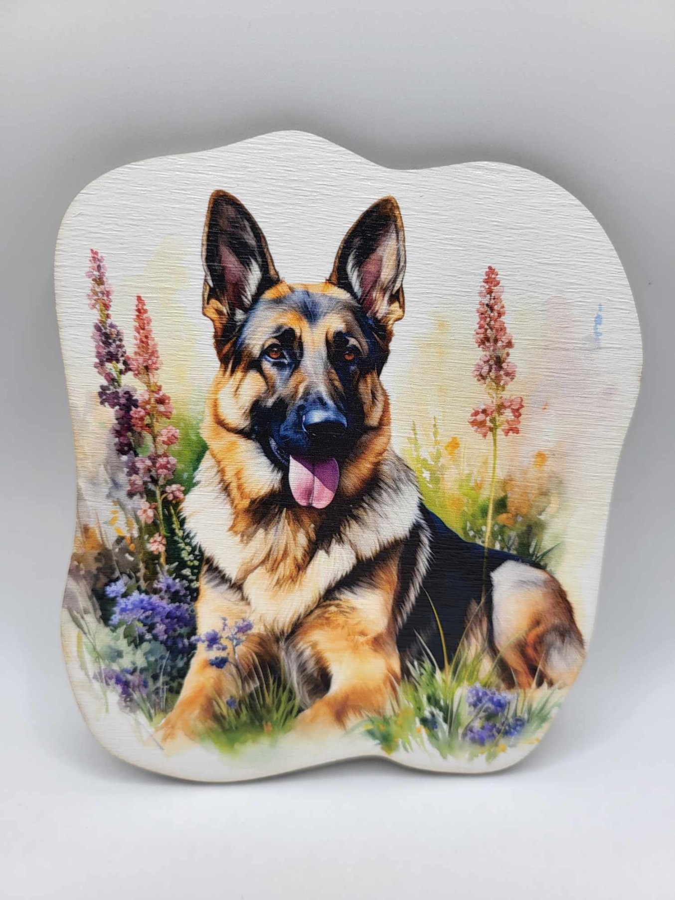 Elegantná drevená magnetka s motívom vlčiaka je krásnym doplnkom na narodeninové aj tematické torty. Vhodná je ako dekorácia na tortu, na čelo torty, ale po jednoduchom nalepení špajgle zo zadnej strany ju môžete použiť aj ako zápich na tortu.