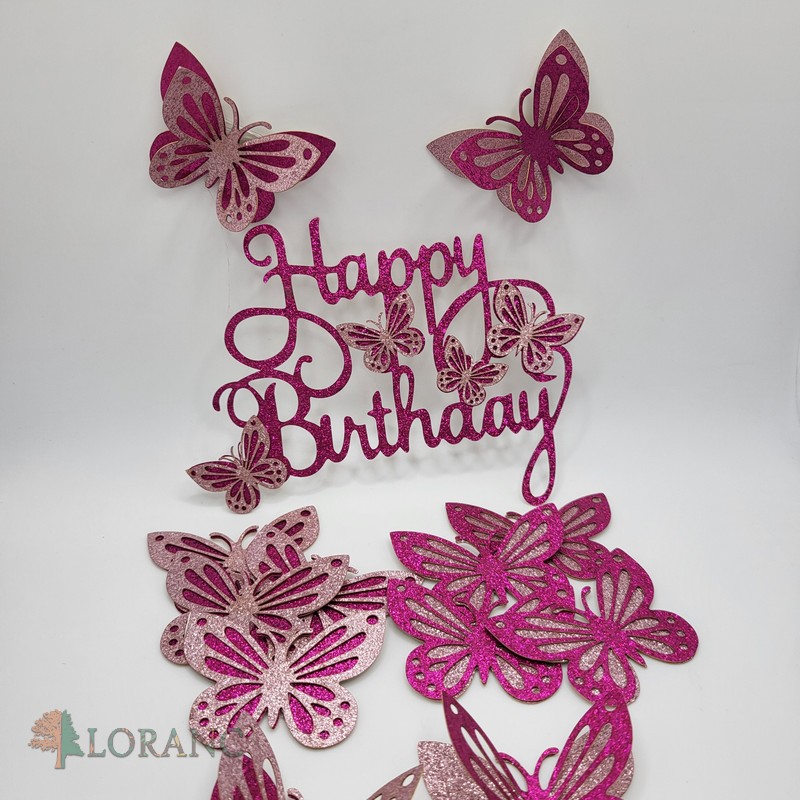 pap. zápich Happy Birthday – Motýle /cyklamenová/
