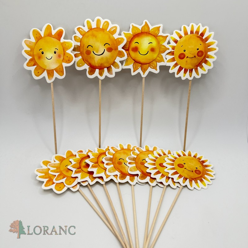 Originálne papierové zápichy na tortu v tvare slniečka sú skvelou dekoráciou na detské oslavy.  Je možné ich použiť aj na cupcakes, mini tortičky či candy bar.
