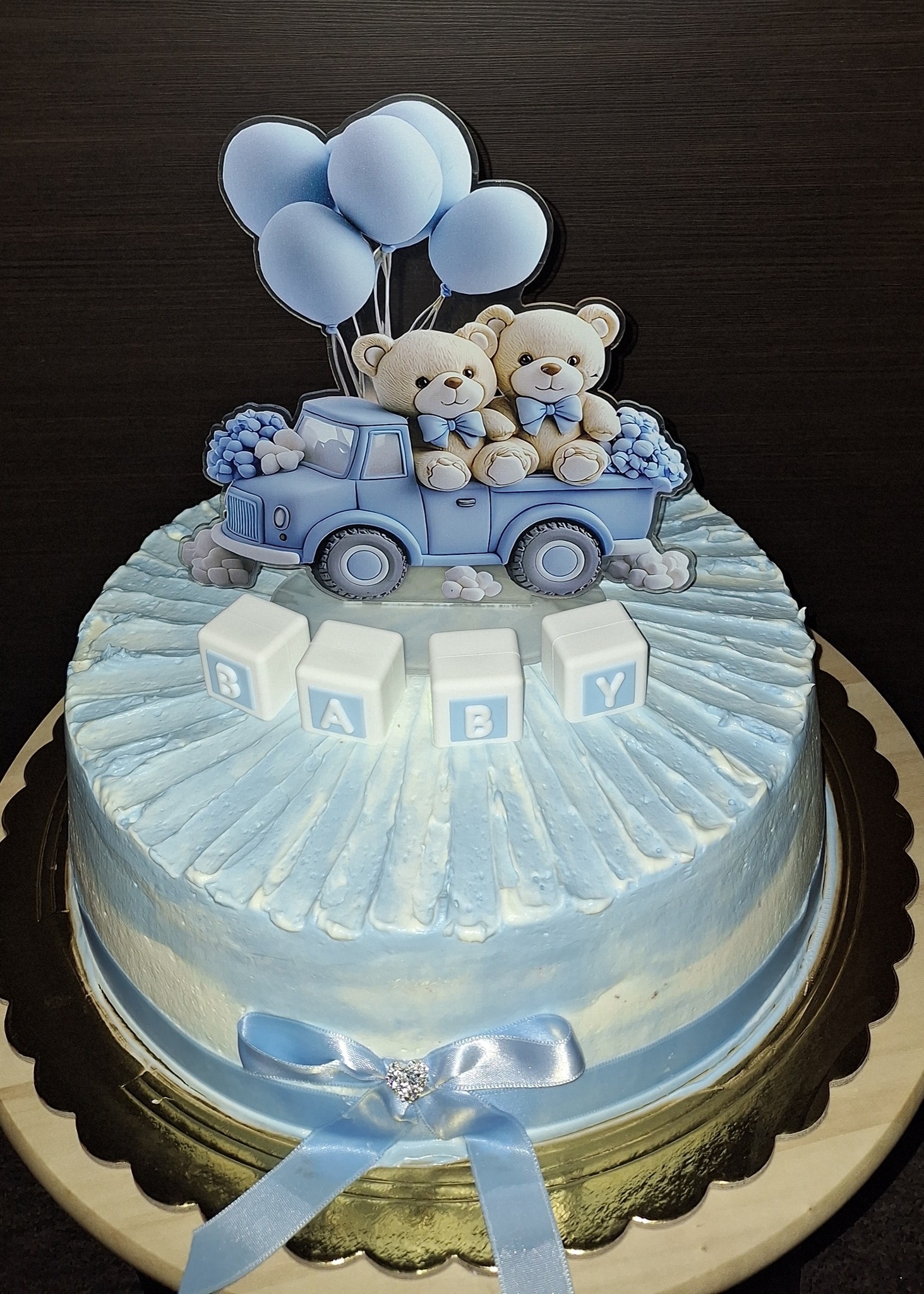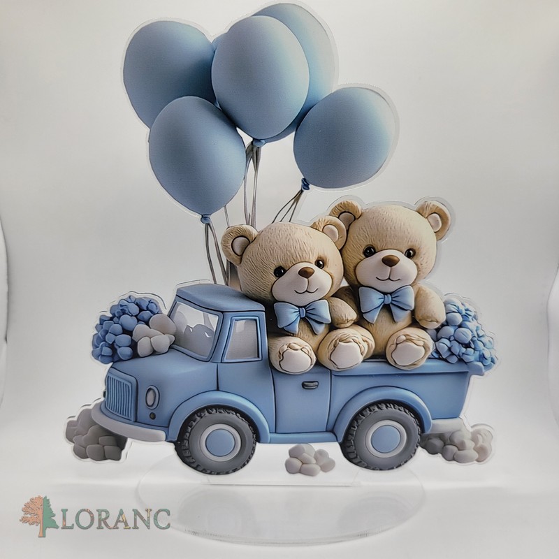 pl. dekorácia – Macko + autíčko + balóny /modrá/