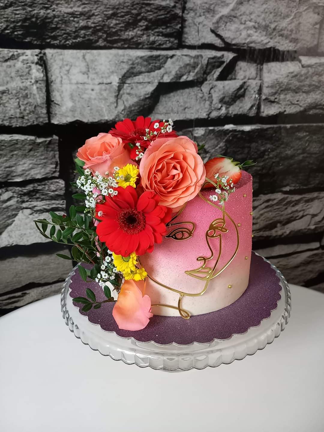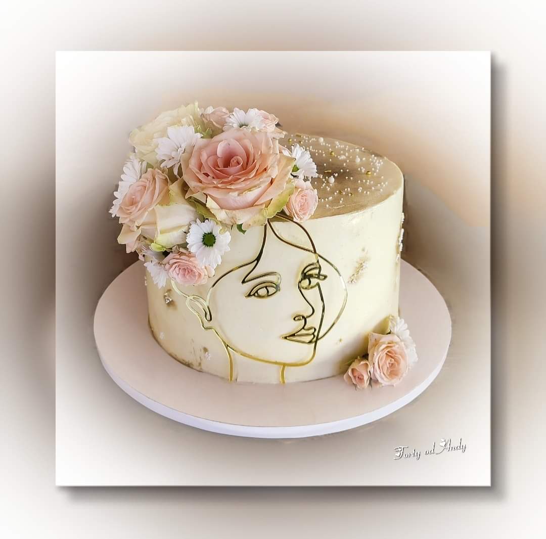 Elegantná plastová dekorácia na tortu – zlatá line art tvár ženy je luxusný a moderný doplnok pre výnimočné torty. Minimalistický dizajn pôsobí štýlovo, nadčasovo a dokonale sa hodí na oslavy pre ženy, dievčatá, svadby, dámske párty či glamour narodeniny.
