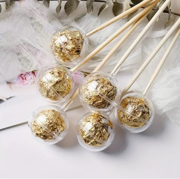 Do guličky vložíte cukrík, čokoládu…….. a guličku zavriete a nastoknete na špajdľu