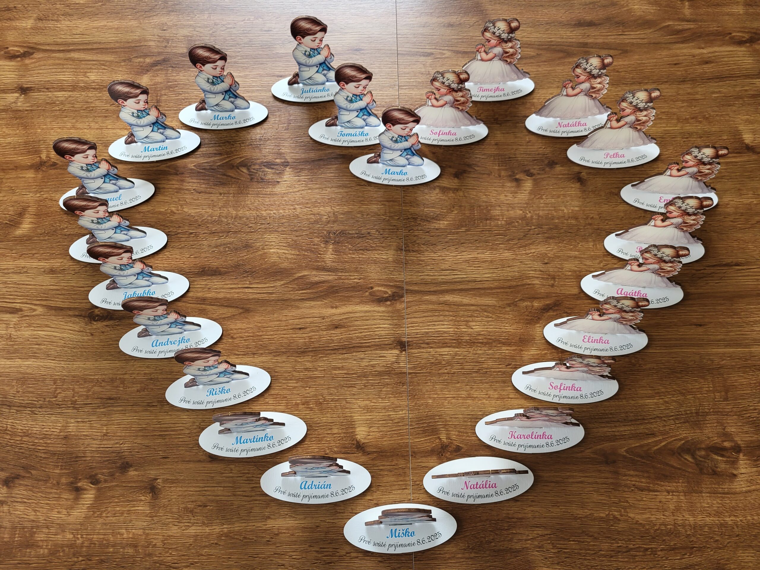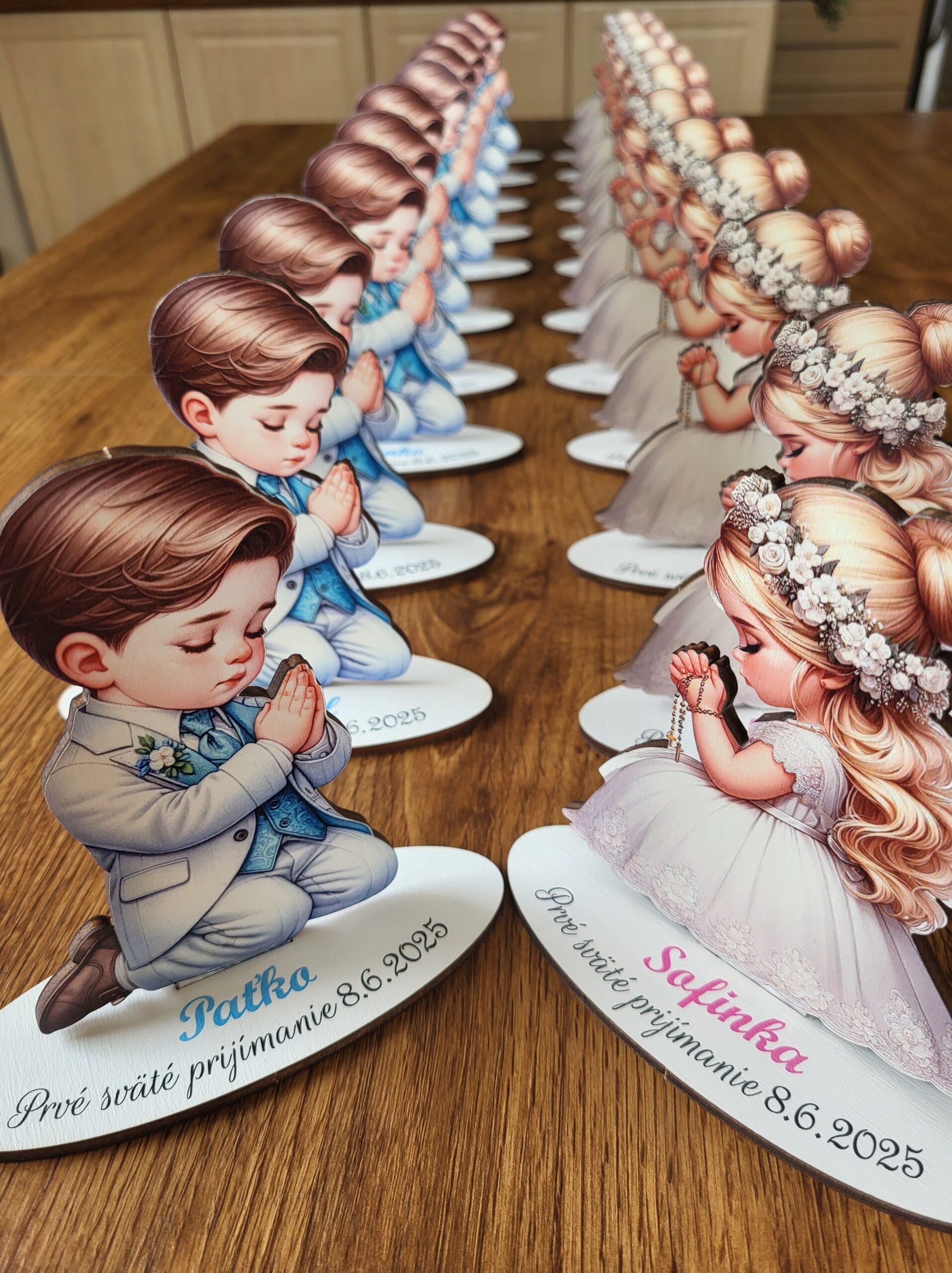 Prvé sväté prijímanie a Sviatosť birmovania sú míľniky, ktoré si zaslúžia niečo špeciálne. Náš personlizovaný stojanček je navrhnutý tak, aby do vášho domova priniesol kúsok tejto slávnostnej atmosféry. Či už ho umiestnite na slávnostne prestretý stôl, alebo ho darujete ako pamiatku od krstných rodičov, vždy vyčarí úsmev na tvári.