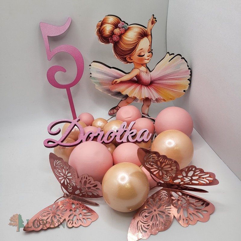 Sada dekorácií na tortu – baletka, číslo, meno, motýle a guličky | Kompletná výzdoba na detskú oslavu