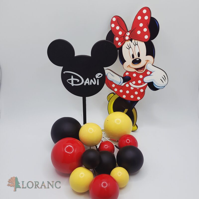 Sada dekorácií na tortu s obľúbeným motívom Minnie Mouse skvelo doplní každú detskú narodeninovú tortu. Balenie obsahuje farebnú magnetku Minnie, ktorú je možné použiť aj ako zápich – stačí dozadu nalepiť špajlu, 12 ks plastových guličiek ako zápich v červenej, žltej a čiernej farbe a drevený zápich v tvare Minnie ušiek s menom podľa želania. Celá sada vytvára výrazný 3D efekt, jednoducho sa aplikuje a je vhodná na torty aj na candy bar. Magnetka môže po oslave slúžiť ako milá pamiatka alebo dekorácia do detskej izby