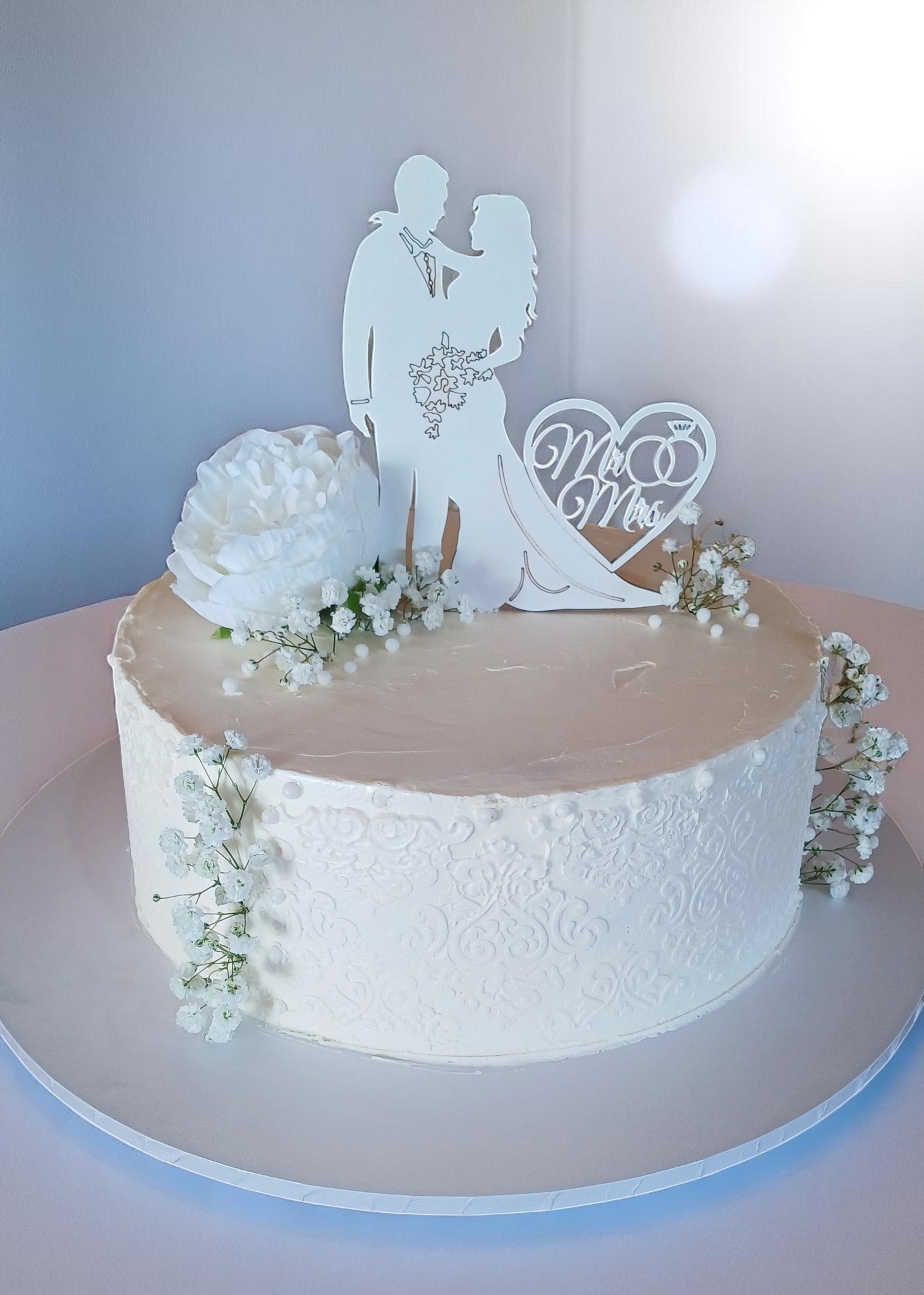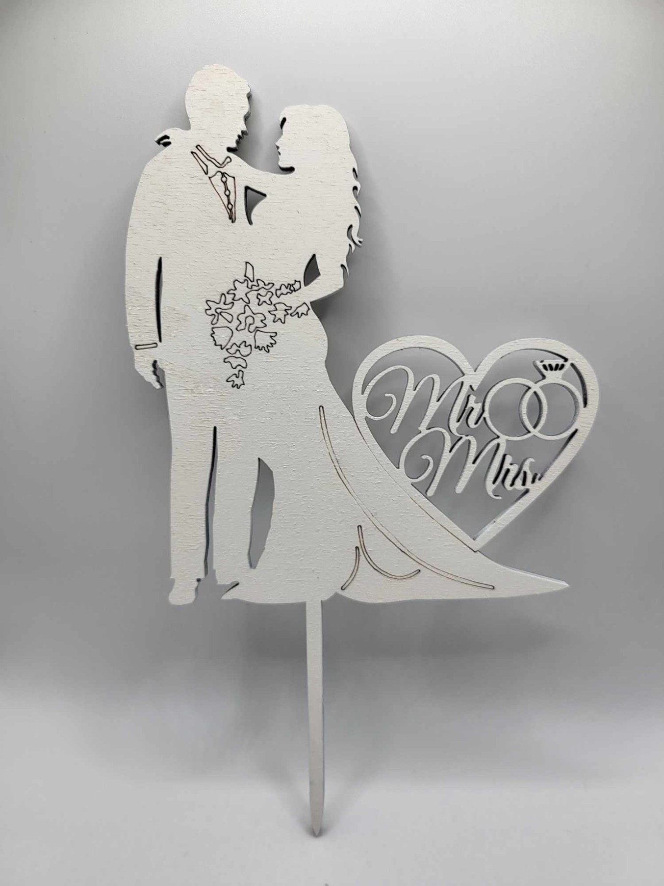Zápich Svadobný pár + Mr&Mrs + obrúčky /biela/