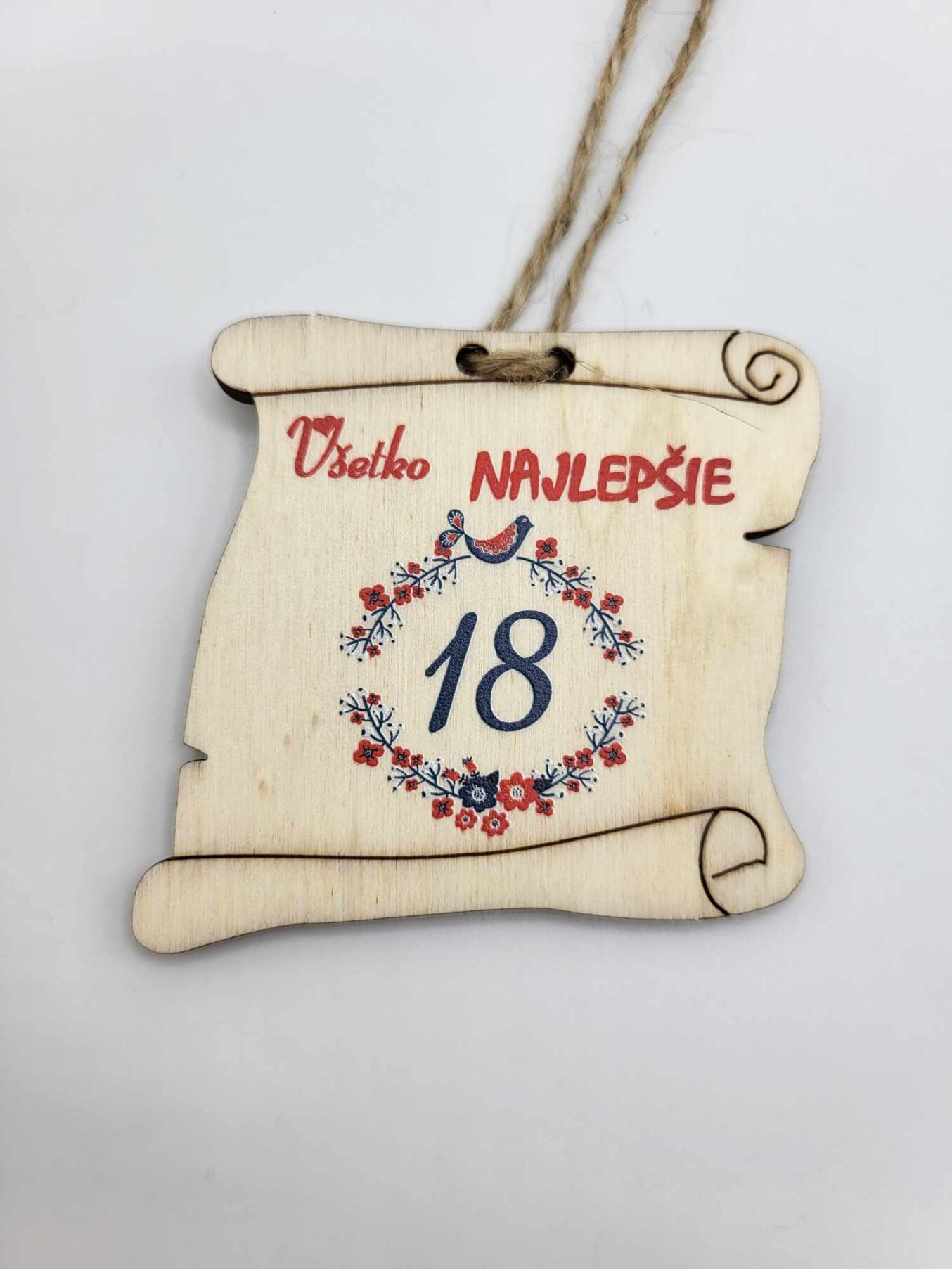 Visačka z drevenej preglejky vhodná ako dekorácia na narodeninový darček