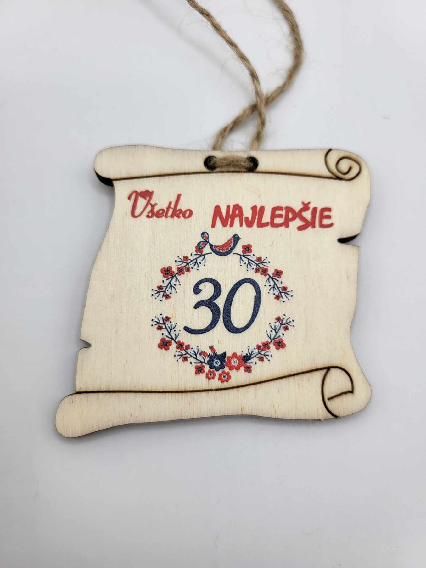 Visačka z drevenej preglejky vhodná ako dekorácia na narodeninový darček