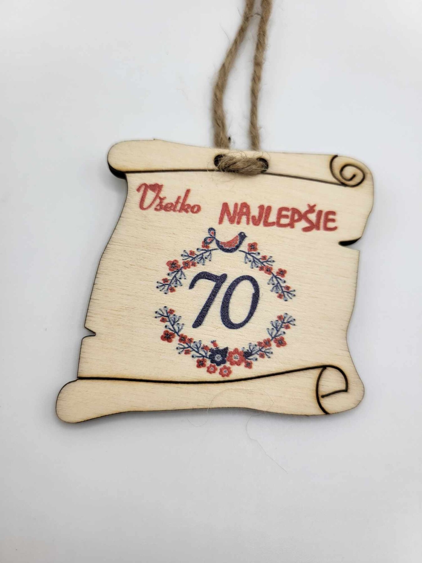 Visačka z drevenej preglejky vhodná ako dekorácia na narodeninový darček