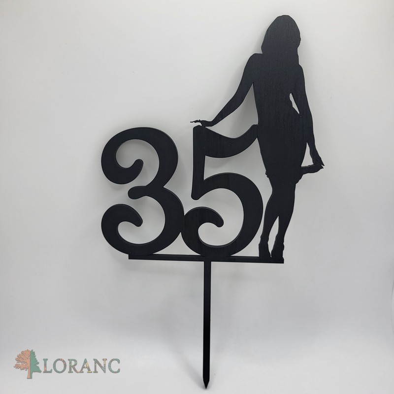 Zápich na tortu číslo 35 + postava ženy /čierna/