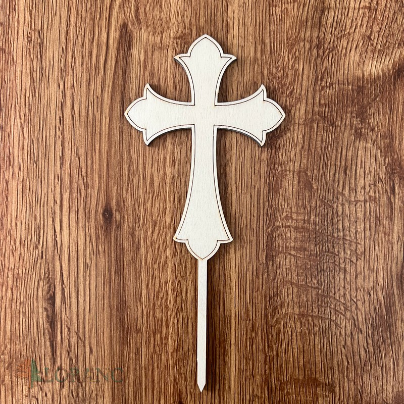 Kríž je vyrezaný z kvalitnej drevenej preglejky a pôsobí jemne, no zároveň dôstojne. Môžete ho použiť ako dekoráciu na čelo torty, prípadne stačí zo zadnej strany nalepiť špajdľu a jednoducho z neho vytvoríte praktický zápich na tortu.