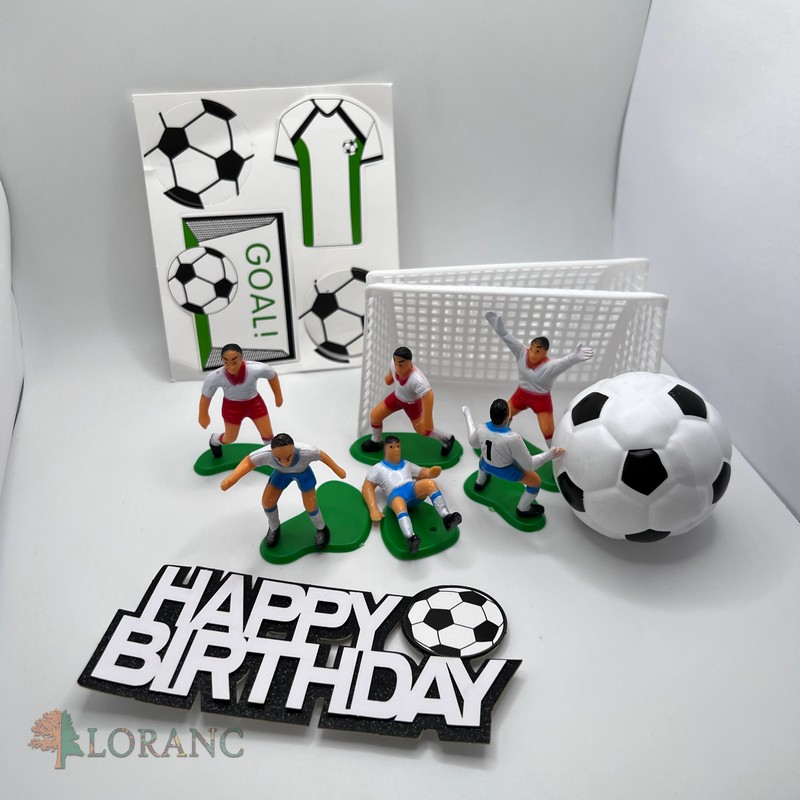 futbalová lopta veľká + zápich Happy Birthday + papierové zápichy 4 ks + futbalová bránka 2 x + hráči 7 ks
