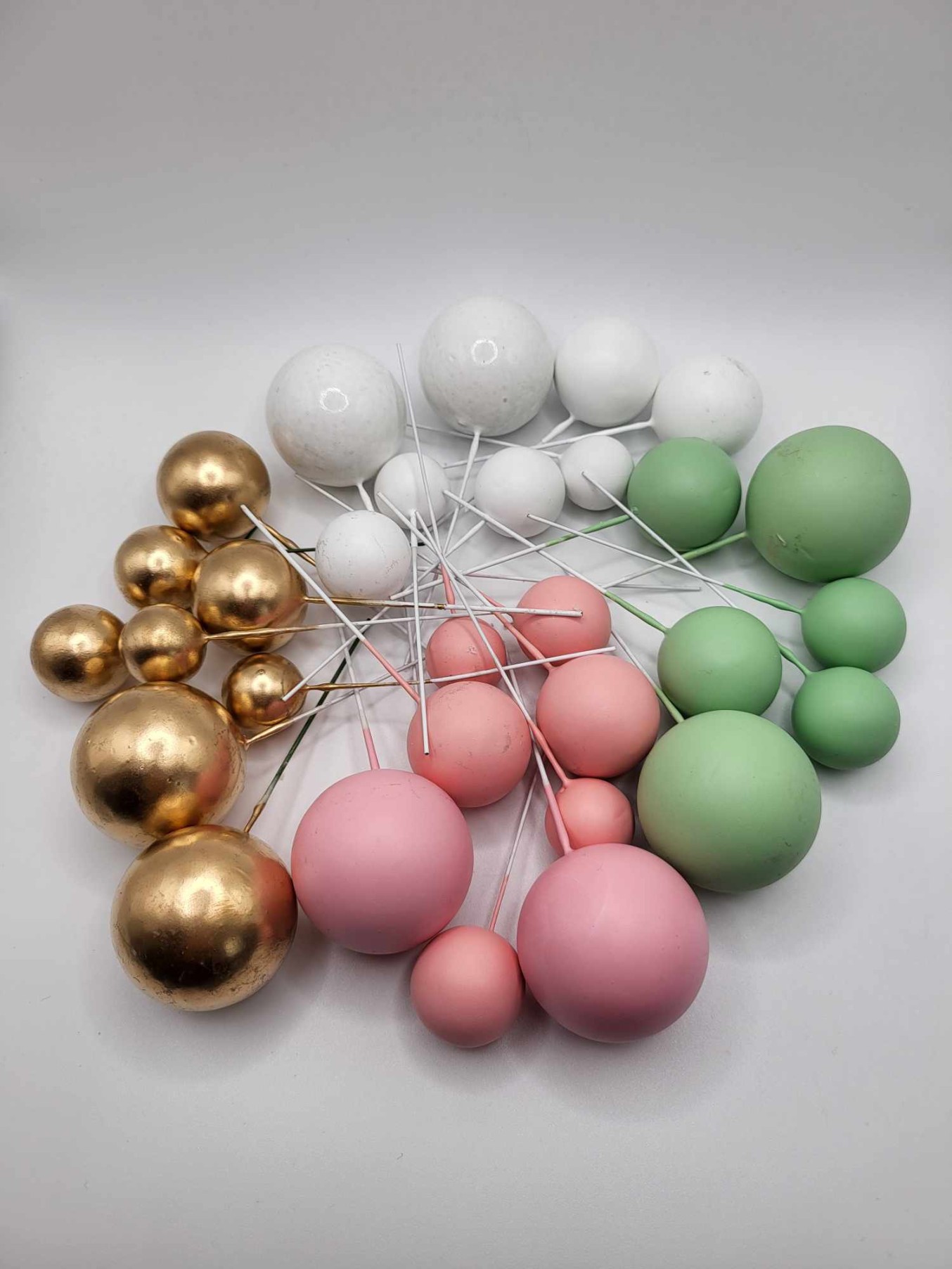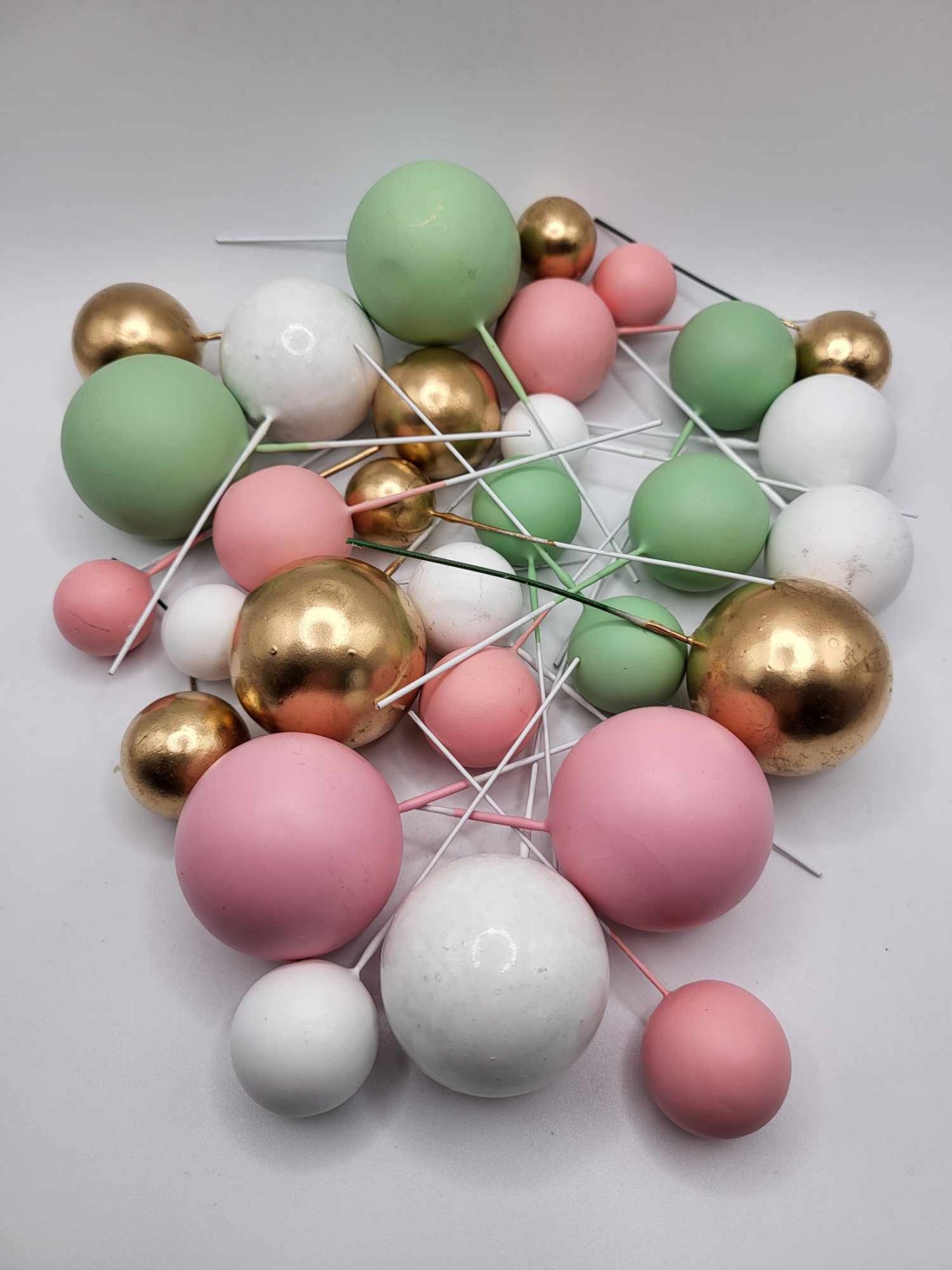 zápich na tortu/Guličky/zelené,ružové,biele,zlaté/SADA 10