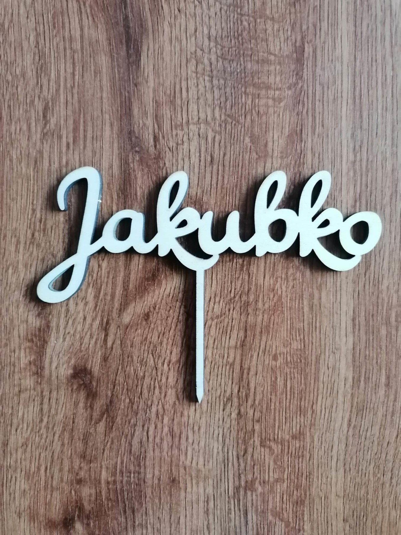 Personalizovaný drevený zápich na tortu s menom podľa želania.