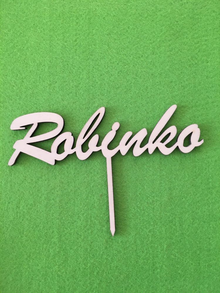 Personalizovaný drevený zápich na tortu s menom podľa želania.