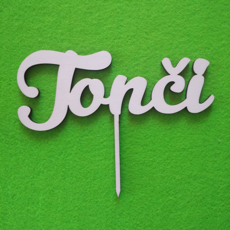 Personalizovaný drevený zápich na tortu s menom podľa želania.