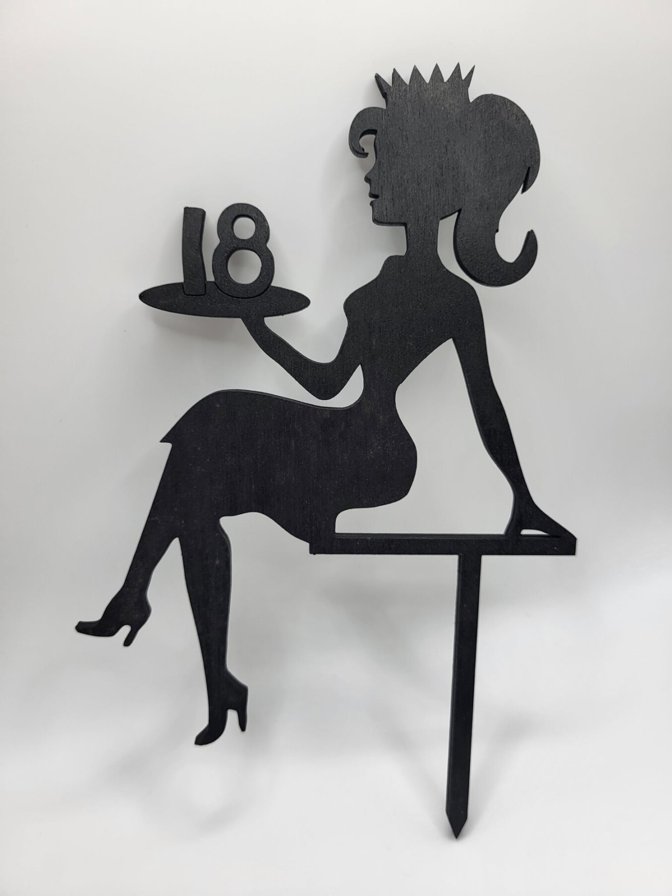 Zápich na tortu – sediaca žena/dievča číslo 18 + korunka /čierna/