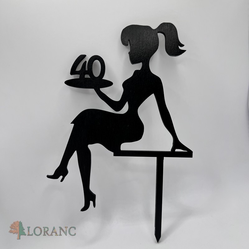 Zápich na tortu – sediaca žena/dievča + číslo 40 /typB/čierna/