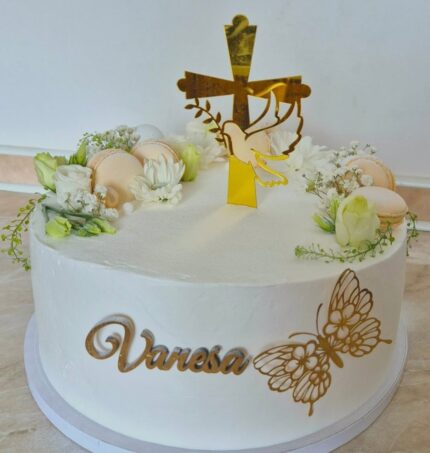 Elegantný plastový krížik ako dekorácia na tortu vhodný na 1. sväté prijímanie, birmovku, krst či inú duchovnú slávnosť. Možno ho použiť na čelo torty alebo po nalepení špajdle ako zápich na tortu.