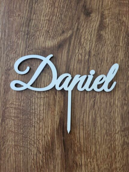 Personalizovaný drevený zápich na tortu s menom podľa želania.