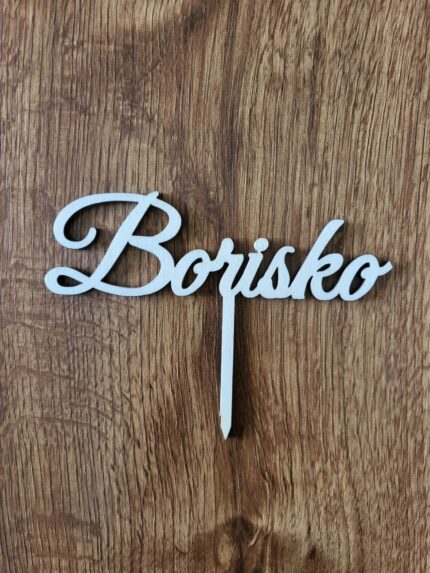 Personalizovaný drevený zápich na tortu s menom podľa želania.