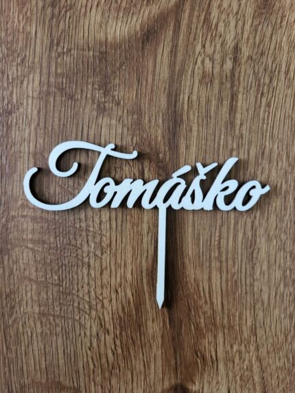 Personalizovaný drevený zápich na tortu s menom podľa želania.