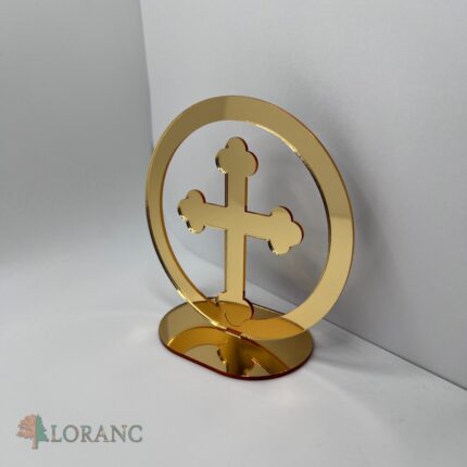 Dekorácia na tortu/stojan – pl. krížik zlatý